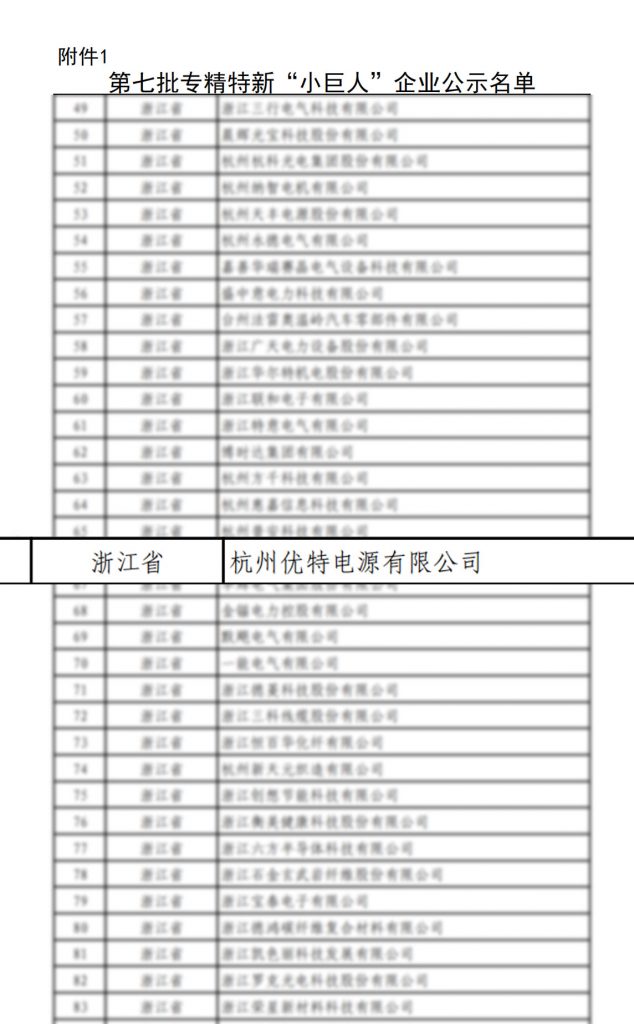 重要里程碑!杭州优特电源有限公司成功跻身国家级专精特新“小巨人”企业行列